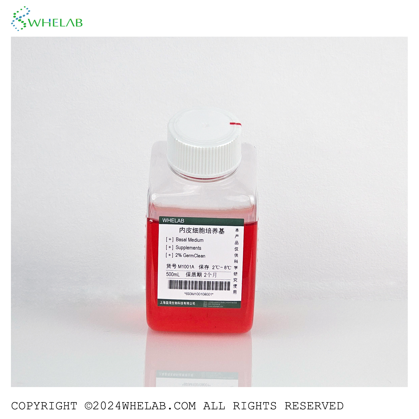 | 培养基成分 | Complete culture medium with Basal medium,Supplements,FBS,GermClean,适用于内皮细胞系培养 |